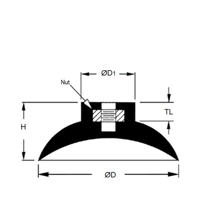 Suction Cups - 38.1x15.9 mm - Hollow Neck with 8-32 Insert - Blend of natural rubber and SBR rubber Suction Cup